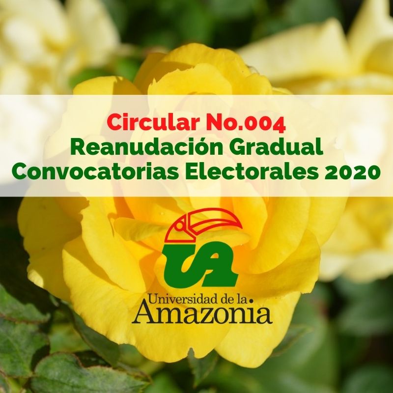 El Consejo electoral de la Universidad de la Amazonia, en ejercicio de las facultades otorgadas en los reglamentos universitarios en sesión ordinaria realizada el 29 de Septiembre de 2020, aprobó reanudar gradualmente las Convocatorias No. 01, 02, 03 de 2020 mediante las cuales se estableció el procedimiento para suplir las vacantes existentes y las que están próximas a vencer, convocando inicialmente las instancias en las que tenga representación los docentes de la Universidad de la Amazonia y finalizando con la elección de estudiantes y graduados.