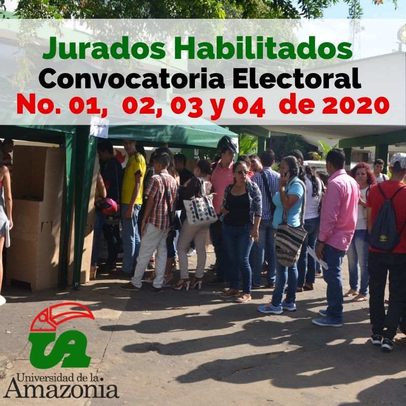 El Consejo Electoral de la Universidad de la Amazonia da a conocer el listado de funcionarios designados como Jurados Electorales para el día 20 de Noviembre de 2020 según Convocatoria Electoral No. 01, 02, 03 y 04 de 2020 Representante ante las diferentes instancias.