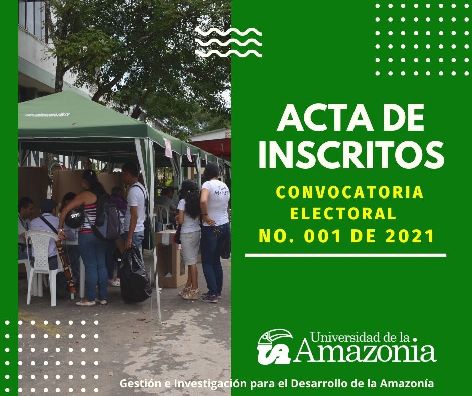 Florencia (Caquetá), siendo las tres de la tarde (03:00 p.m.) hora legal Colombiana del día veintitrés (23) de abril de dos mil veintiuno (2021), en las instalaciones de la Secretaría General de la Universidad de la Amazonia, se procede a realizar el acta de cierre de inscripciones electorales de la convocatoria Electoral No. 001 de 2021, por medio de la cual se convocó a la Asamblea para elegir al Representante del Sector Productivo ante el Consejo Superior de la Universidad de la Amazonia.