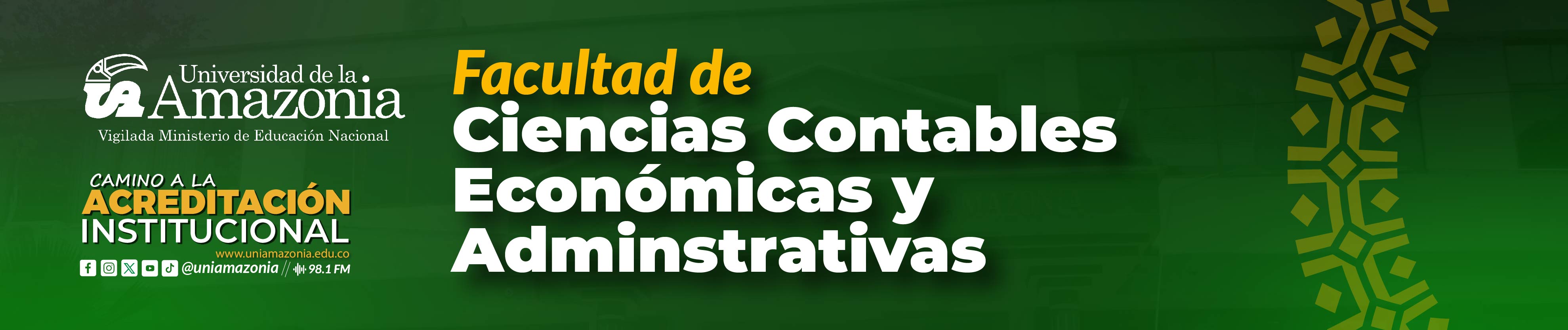 Modalidad Presencial Modalidad a Distancia Consolidar la Facultad de Ciencias Contables, Económicas y Administrativas, como la unidad Académica: que articula saberes, disciplinas y profesiones; capaz de asimilar las transformaciones que la modernidad plantea y dispuesta a mantener la excelencia en docencia, investigación y extensión en la formación del talento humano que requiere la nación y en particular la región amazónica. Somos una Facultad con el compromiso de gestionar el conocimiento en el área de las Ciencias Administrativas, Económicas y Contables, de acuerdo con las necesidades locales, regionales, nacionales e internacionales en escenarios empresariales y sociales, para contribuir al desarrollo sostenible de la región amazónica. A través de un equipo docente cualificado, una estructura académica sólida y una infraestructura de calidad, promovemos una educación basada en la ética, la investigación y el compromiso con la comunidad, formando profesionales competentes y comprometidos con el desarrollo socioeconómico sostenible La Facultad será reconocida por su capacidad de liderazgo en la formación de profesionales en ciencias Contables, Económicas y Administrativas, destacada por su impacto en el desarrollo regional y nacional, su compromiso con la sostenibilidad ambiental y su contribución a la sociedad mediante una educación de alta calidad Acuerdo 268 del 18 de octubre de 2024 Sulbey María Suarez Castro Liliana Patricia Benitez Barrera Coordinadora Programa Administración de Empresas Delcy Polania González Ligia Constanza Rojas Mejía Edna Edit Guaraca Penna Nancy Olaya Delgado Nancy Olaya Delgado Nicolás Gallego Londoño Mariana Delgado Méndez Vanessa Andrea Corredor Arboleda Unidades de apoyo Evelia Sabí Ramírez Sonia Marcela Ochoa Endo Programa de Administración de Empresas (Acuerdo 18 de 1999 del C.A) Programa de Contaduría Pública (Acuerdo 03 del 2000 del C.A) Programa de Administración Financiera (Acuerdo 07 de 2013 C.A) Especialización en Formulación y Evaluación de Proyectos Especialización en Gerencia del Talento Humano Especialización en Gerencia Tributaria