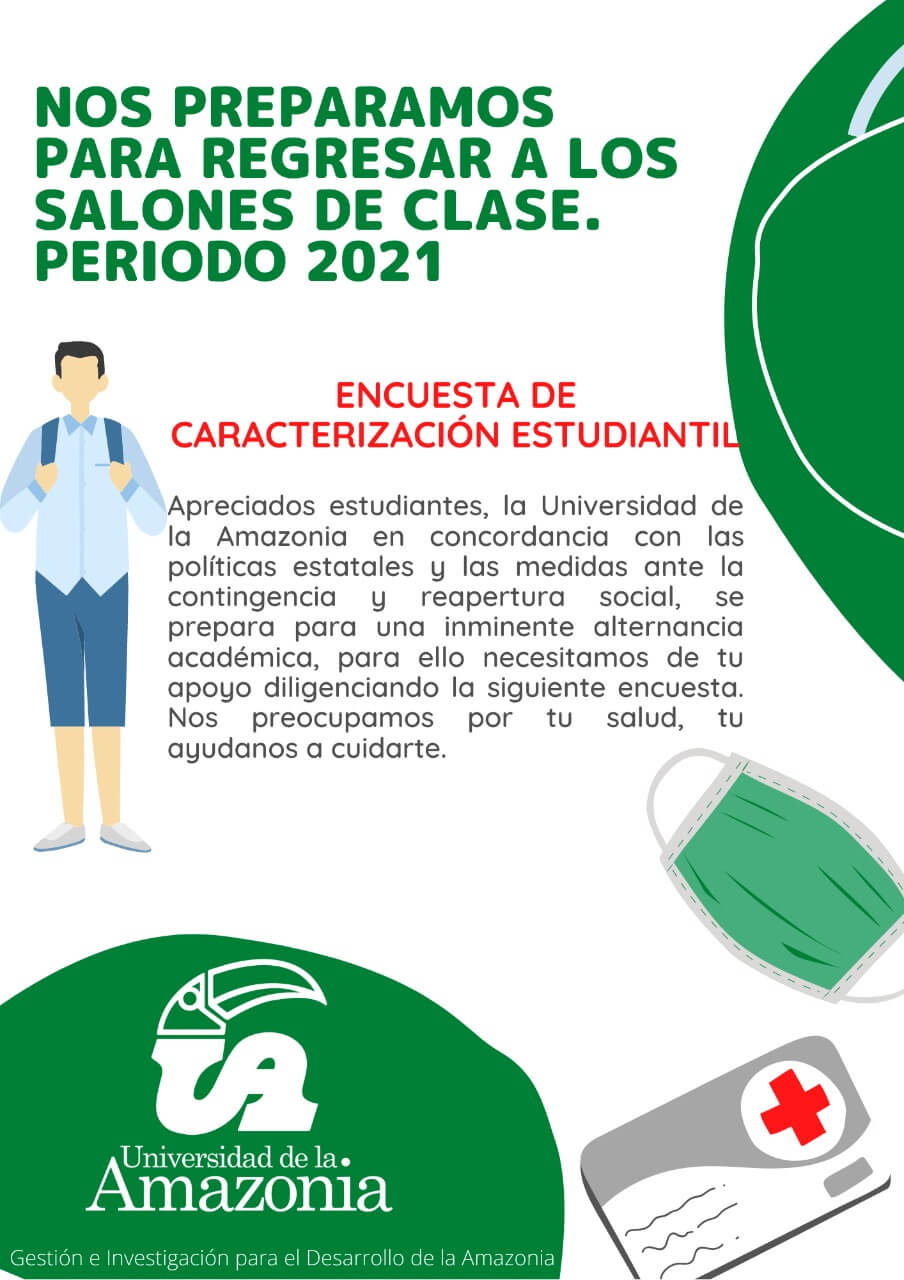 Apreciados estudiantes, La Universidad de la Amazonia desde Bienestar Universitario velando por el cuidado de tu salud, te invita a diligenciar esta encuesta en caso de presentar signos o síntomas de COVID-19. Nuestros profesionales se pondrán en contacto contigo.