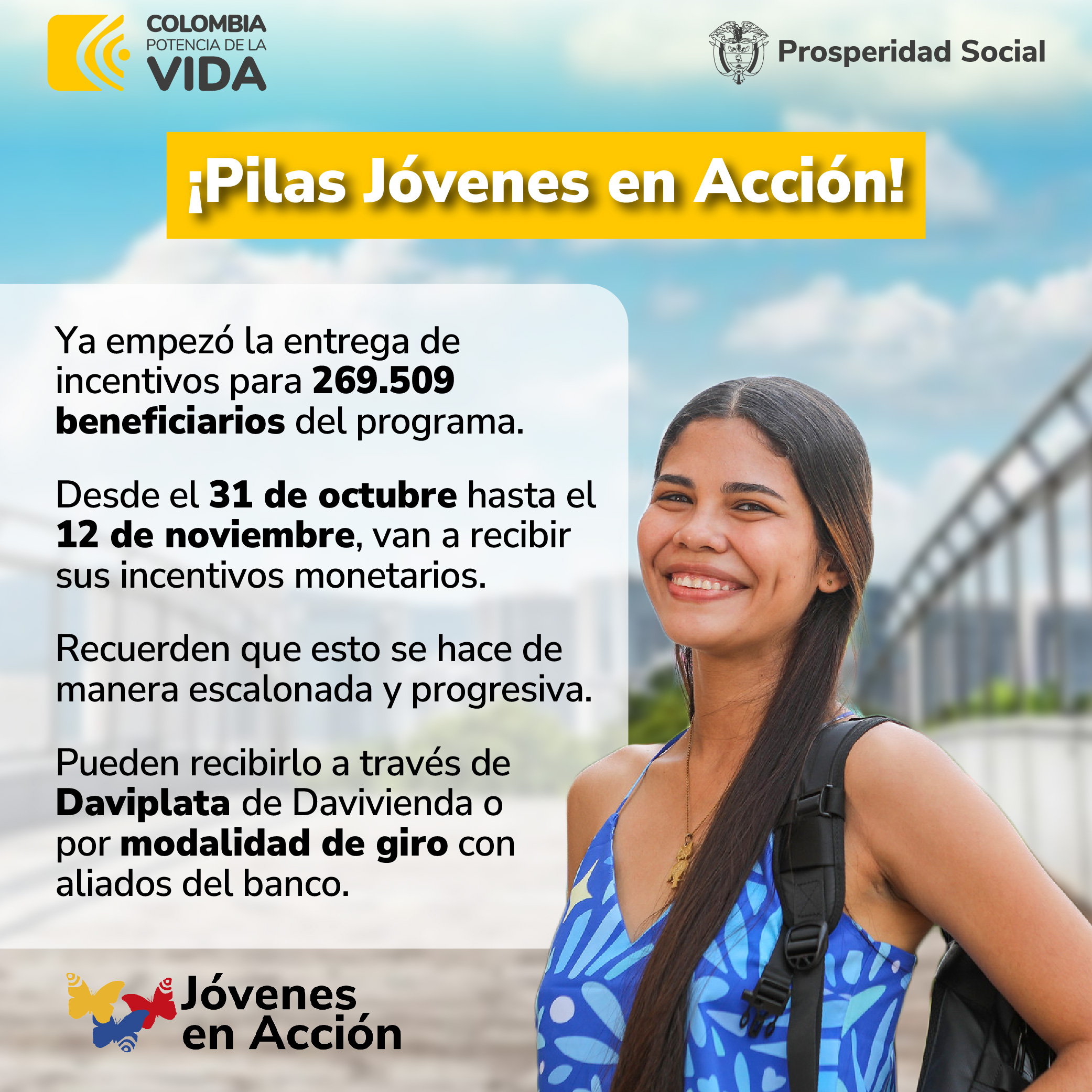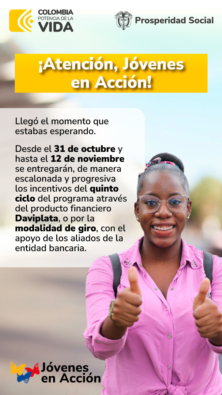 - Durante esta jornada se realizarán múltiples esfuerzos para promover la bancarización de los participantes, con el propósito de facilitar el acceso al incentivo y como medida de seguridad para aquellos jóvenes que reciben montos superiores a los $700 mil pesos(para estos jóvenes sólo estará habilitado el canal de pago Efecty).