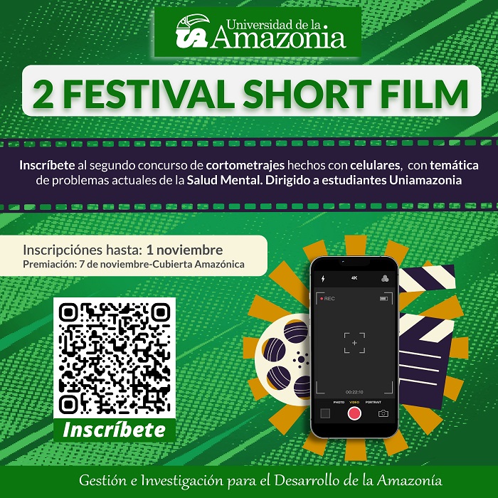 En el marco de la III Semana Artística y Cultural de la Universidad de la Amazonia, se llevará a cabo el II concurso denominado SHORT FILM FESTIVAL. Un festival de cortometrajes con celulares, esperamos puedan disfrutar de este evento y a su vez poner su imaginación al máximo.