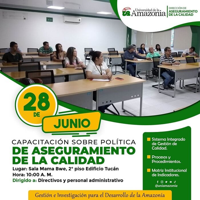 La Dirección de Aseguramiento de la Calidad, se permite invitar a todos los Directivos y Personal Administrativo de la Institución, a participar de la Capacitación sobre la Política de Aseguramiento de la Calidad, en donde se tratarán temas importantes tales como: Sistema Integrado de Gestión de Calidad, Procesos y Procedimientos y la Matriz Institucional de Indicadores.