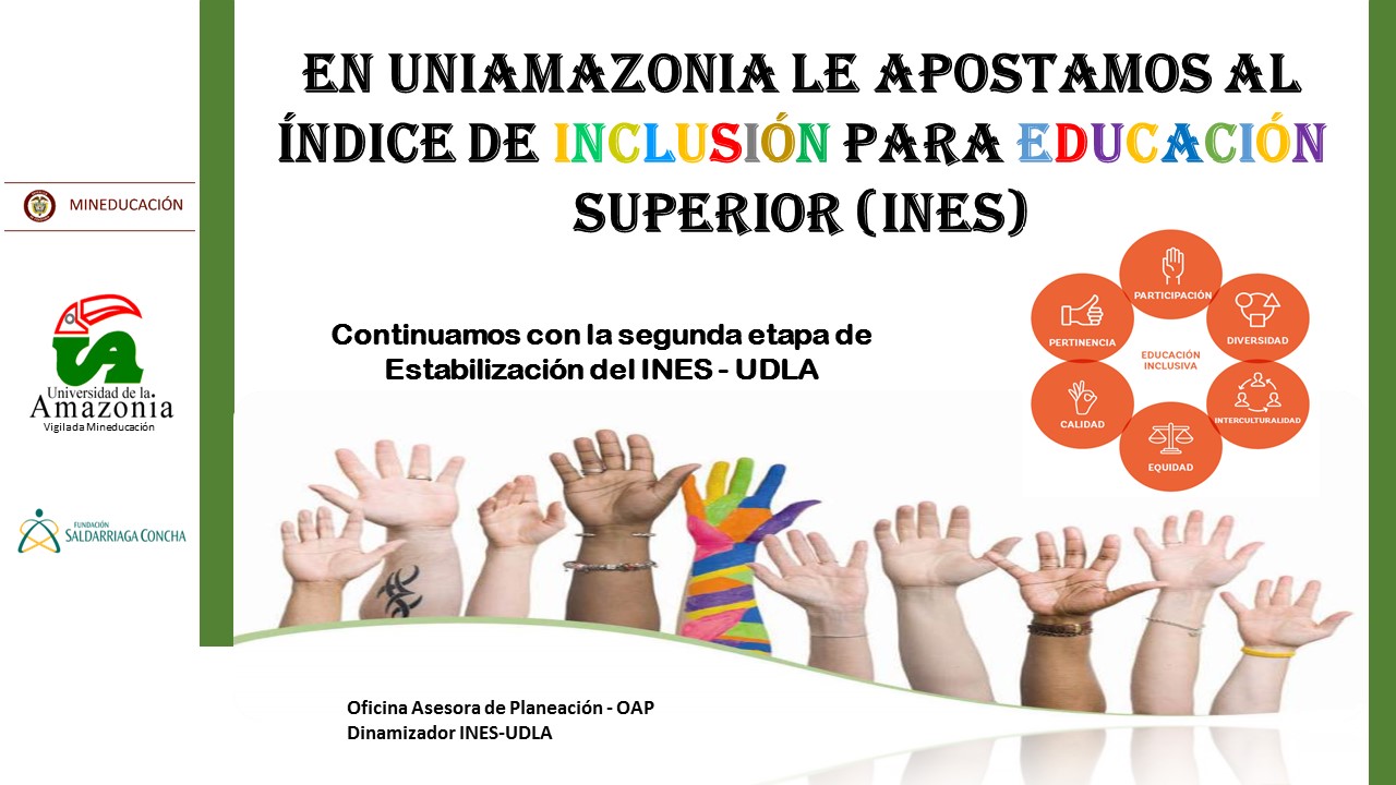 La Universidad de la Amazonia hace parte de las 20 instituciones de los 16 departamentos del país, que se encuentra en proceso aplicación del Índice de Inclusión para Educación Superior (INES), con el apoyo de la Fundación Saldarriaga Concha, operador logístico del MEN. El INES, es una herramienta creada por el Mineducación que busca a corto y mediano plazo, identificar y analizar cómo está respondiendo las IES a la educación inclusiva, la cual constituye a una educación de calidad.