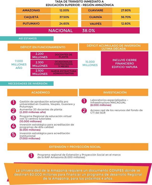 La UDLA también hizo presencia en la mesa de Educación con la propuesta de “Generación de capacidades y oportunidades para el desarrollo regional de la Amazonía, desde la Universidad de la Amazonia”, elaborada a partir de las dificultades operativas y financieras que tiene para llegar a toda la Región con sus procesos misionales de academia, investigación, y proyección y extensión social, puntualizando aquellas necesidades de inversión más prioritarias.