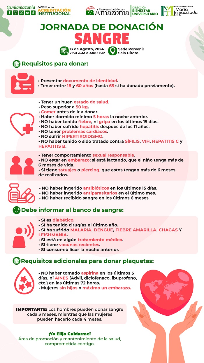 Se contará con la presencia del Hospital María Inmaculada. Cada donación, por pequeña que sea, tiene el poder de transformar vidas y fortalecer el tejido social que nos une, tener en cuenta la recomendaciones específicas para poder donar.