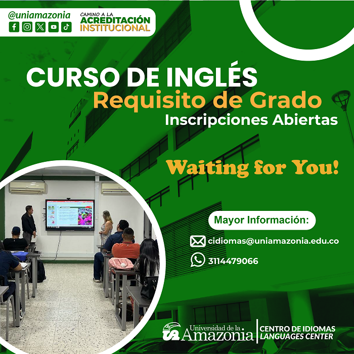 El Centro de Idiomas de la Universidad de la Amazonia informa a la comunidad universitaria las inscripciones al Curso de Inglés como requisito de grado.