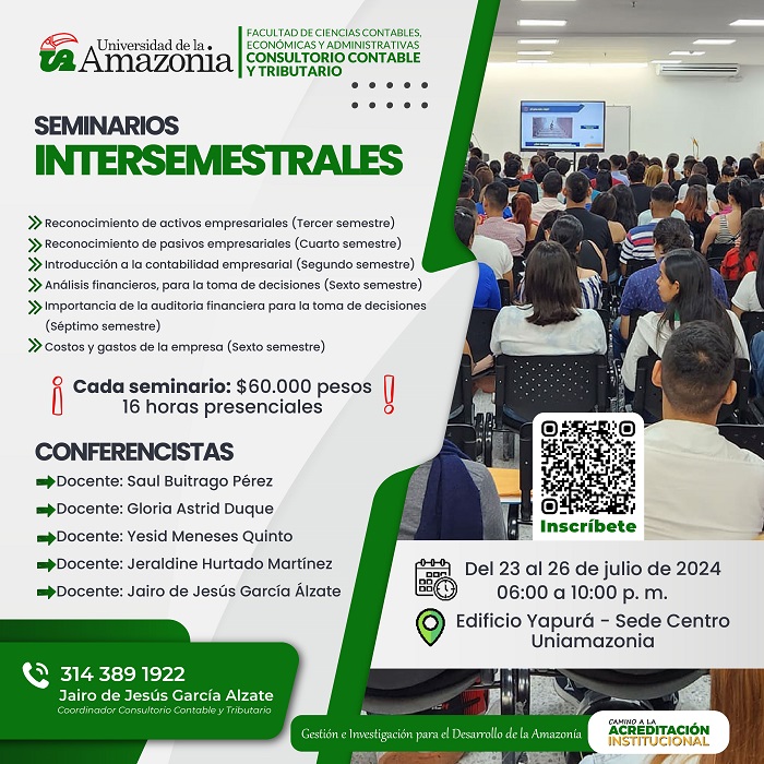 La Facultad de Ciencias Contables, Económicas y Administrativas a través del Consultorio Contable y Tributario tiene el gusto de invitar a los seminarios intersemestrales