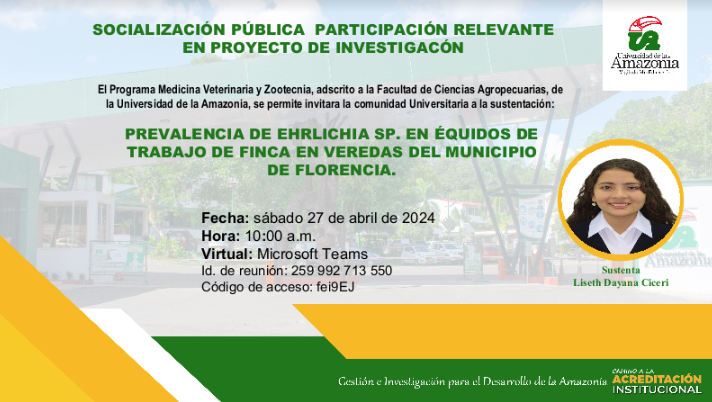 Programa de Medicina Veterinaria y Zootecnia, tiene el gusto de invitarle a la socialización Pública Participación relevante en proyecto de investigación.