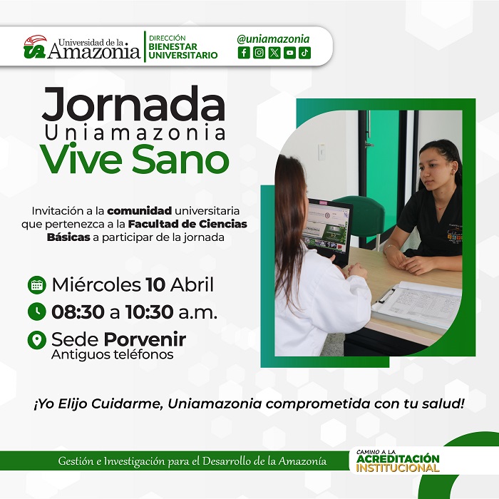Invitación a toda la comunidad Universitaria que pertenezca a la Facultad de Ciencias Básicas a participar de la jornada UNIAMAZONIA – VIVE SANO.
