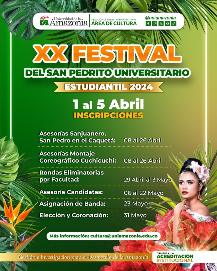 La Universidad de la Amazonia invita a la comunidad académica a participar del reinado de San Pedrito Universitario en su versión número XX.