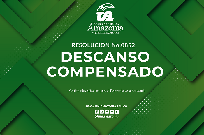 La División de Servicios Administrativos de la Universidad de la Amazonia da a conocer la RESOLUCIÓN No.0852 DEL 2024, POR EL CUAL SE CONCEDE DESCANSO COMPENSADO POR LOS DÍAS LABORABLES 26 Y 27 DE MARZO Y SE SUSPENDEN TÉRMINOS PROCESALES EN LAS ACTUALIZACIONES ADMINISTRATIVAS DE LA UNIVERSIDAD DE LA AMAZONIA.