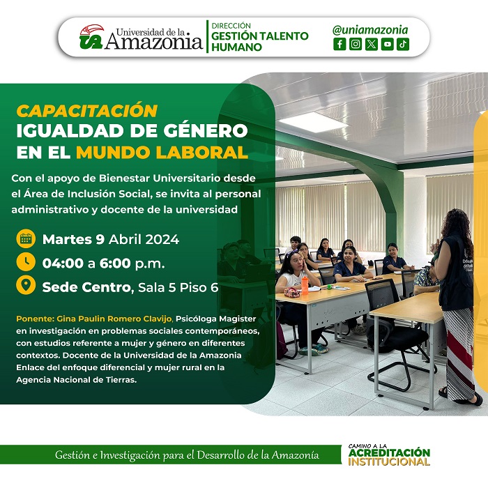 Desde la dirección de bienestar Universitario, el área de inclusión social y la Dirección Gestión Talento Humano invita a la comunidad Universitaria a participar en la capacitación