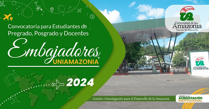 La Universidad de la Amazonia a través de la Resolución No. 0827 de 2024, convoca a estudiantes de pregrado, posgrado y docentes de la Universidad de la Amazonia para ser beneficiarios del programa de Embajadores Uniamazonia para el año 2024