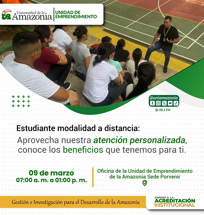 Ven y aprovecha este 9 de marzo nuestra atención. Si estas interesado en conocer de los beneficios y ventajas que tienes como estudiante y Graduado al inscribir su Idea de Negocio con la Unidad de Emprendimiento de la Universidad de la Amazonia. Te esperamos.
