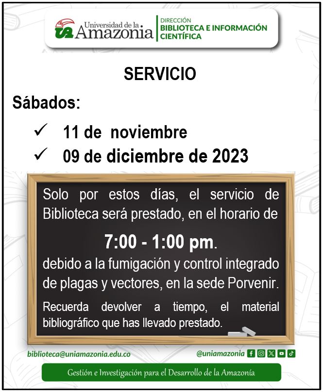 Se informa a la comunidad Universitaria, sobre la prestación del servicio de biblioteca el sábado 11 de noviembre, solo en media jornada.