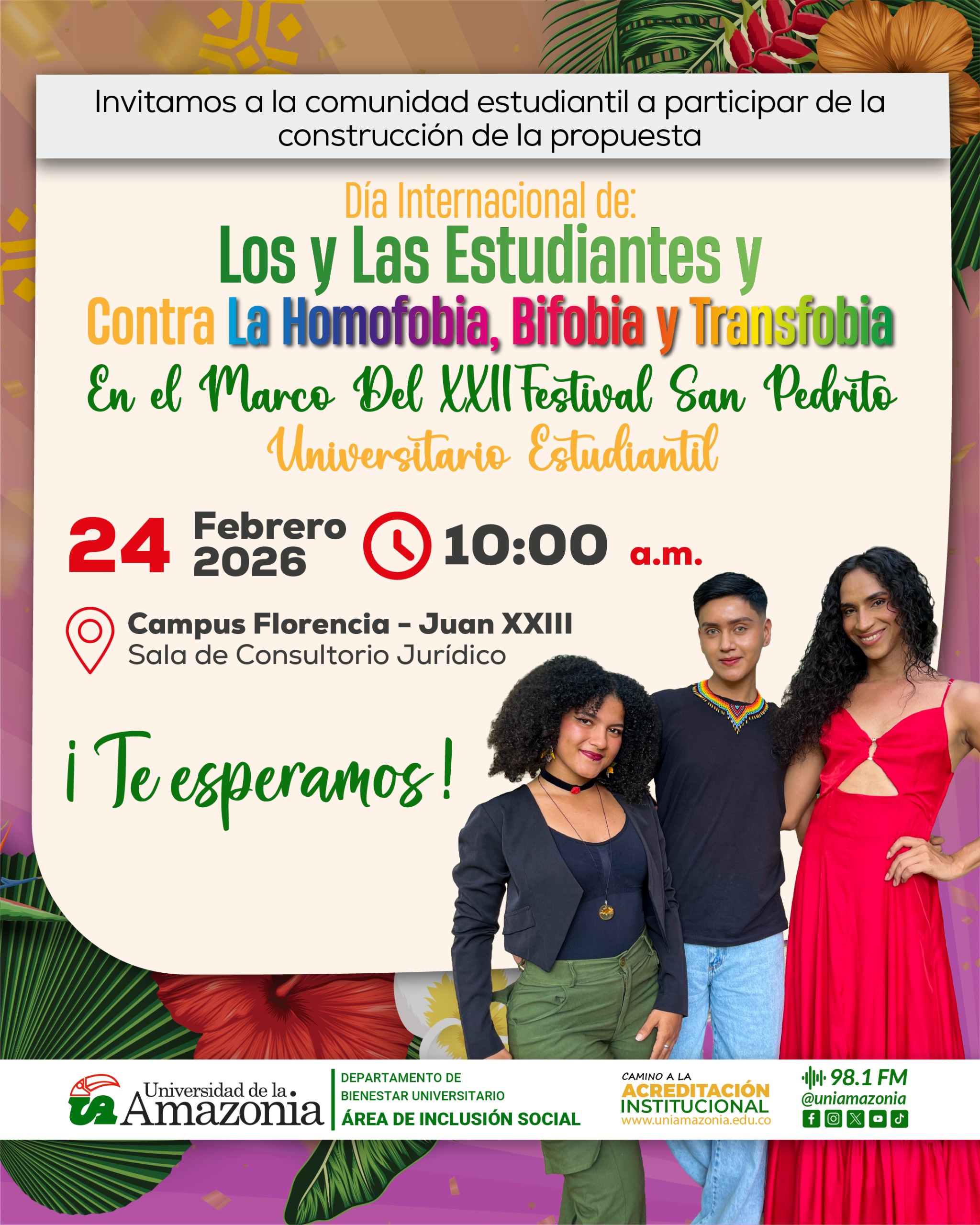 Desde el Departamento de Bienestar Universitario – Área de Inclusión Social, promovemos este espacio de encuentro, reflexión y participación, con el objetivo de fortalecer una comunidad más diversa, respetuosa e inclusiva.