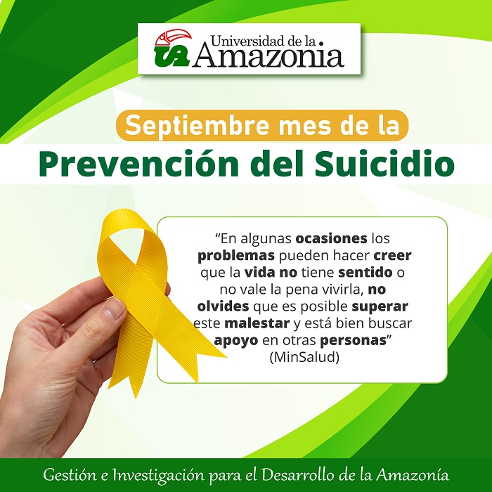 De acuerdo, con la ESTRATEGIA NACIONAL PARA LA PREVENCIÓN DE LA CONDUCTA SUICIDA del Ministerio de Salud y Protección Social, en el mes de septiembre es imprescindible poner en marcha acciones que generen disminución de la conducta suicida y reducción de la tasa de mortalidad.