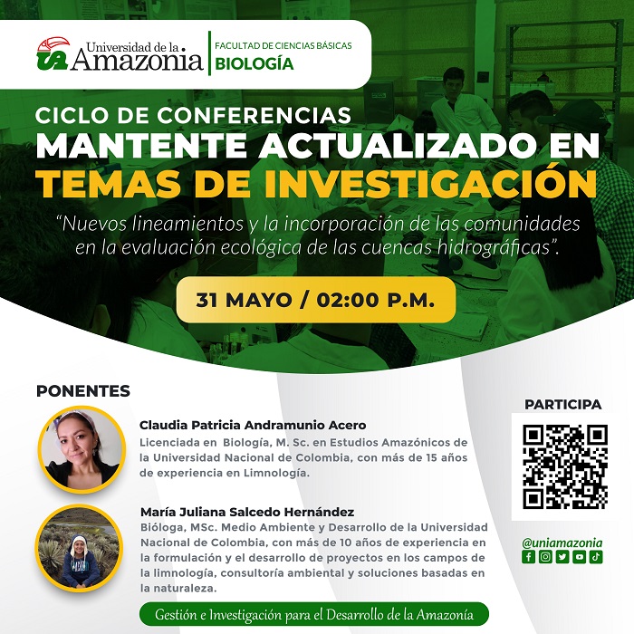 La Facultad de Ciencias Básicas y el Programa de Biología los invita a participar de la conferencia y a conocer los nuevos lineamientos para la evaluación de las cuencas hidrográficas involucrando a las comunidades aledañas.