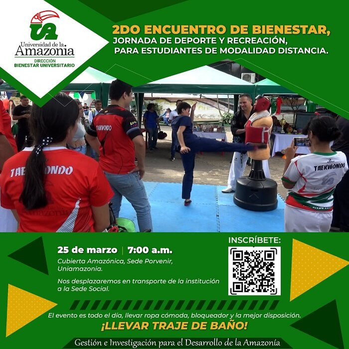 Bienestar universitario se complace en invitarlos a participar del 2DO ENCUENTRO DE BIENESTAR, JORNADA DE DEPORTE Y RECREACIÓN, MODALIDAD DISTANCIA, el cual se llevará a cabo el próximo 25 de marzo de 2023.