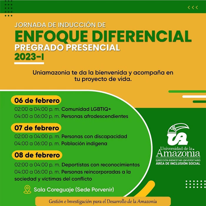 Te compartimos las fechas en que se llevará a cabo las Jornadas de inducción para las poblaciones con enfoque diferencial de la modalidad pregrado presencial 2023-1