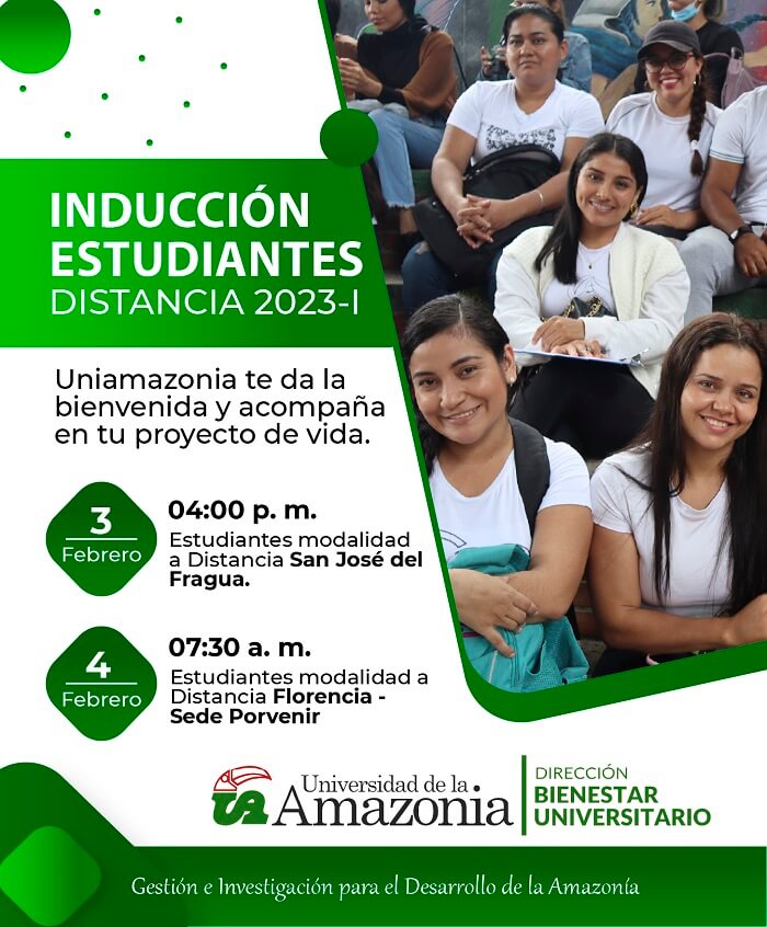 Uniamazonia te da la Bienvenida y Acompaña a tu proyecto de vida. Compartimos las fechas de ingreso a la U y la programación de bienvenida a nuestros nuevos estudiantes de modalidad a distancia.