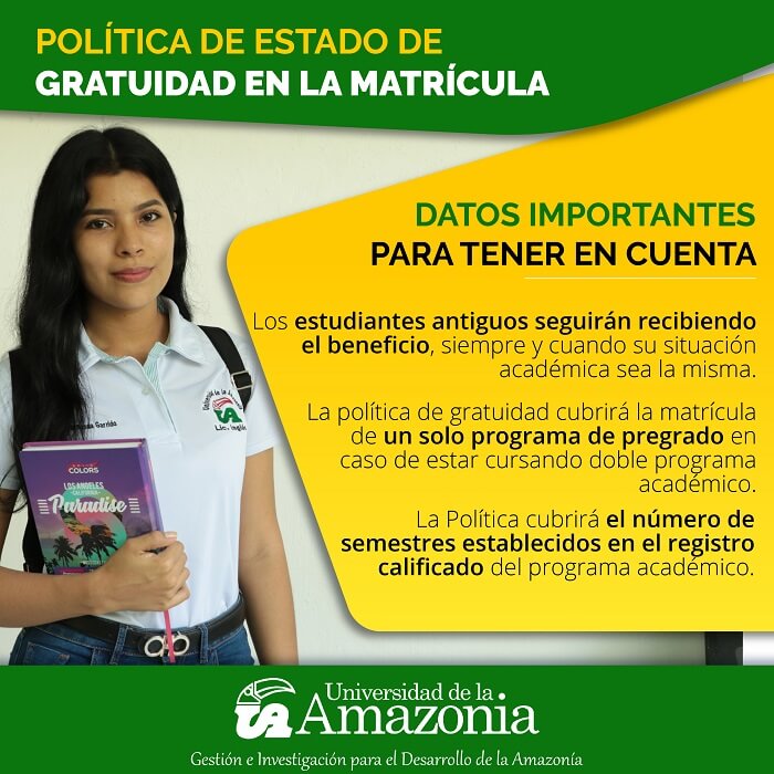 La Universidad de la Amazonia da a conocer datos importantes sobre la Política de Estado de Gratuidad en la Matrícula.