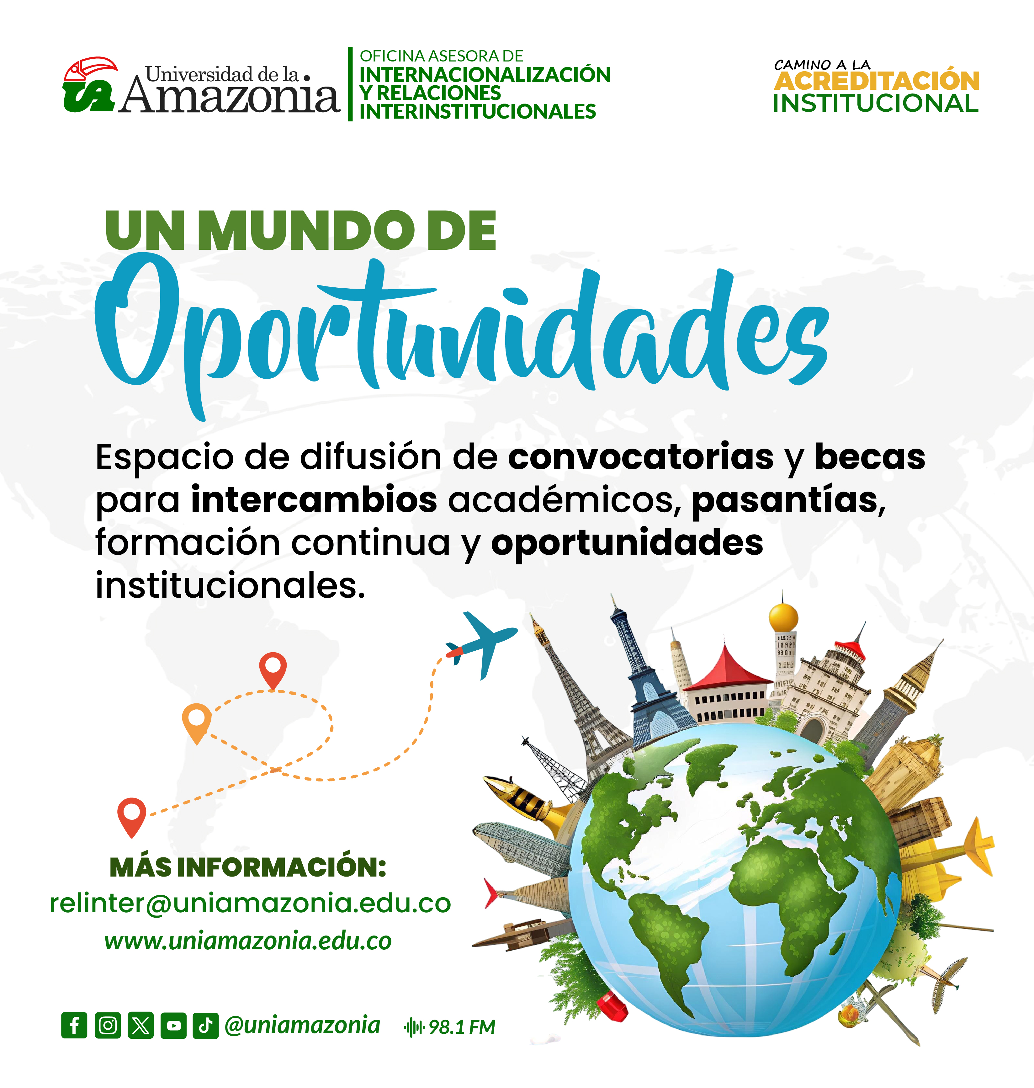 La Oficina Asesora de Internacionalización y Relaciones Interinstitucionales de la Universidad de la Amazonia es tu portal para crecer.