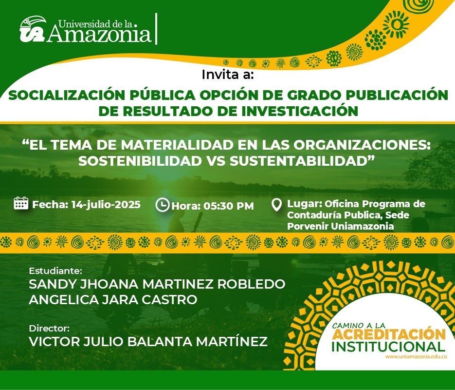 La Universidad de la Amazonia, a través de sus programas académicos, tiene el agrado de invitar a la comunidad universitaria y al público en general a la Socialización de Trabajos de Grado a realizarse en el marco del Seminario de Investigación.