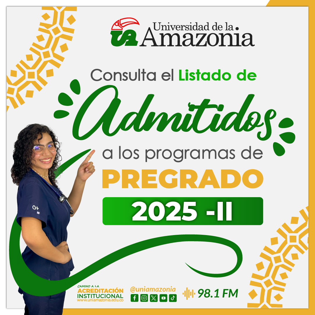 De conformidad con el Calendario Académico para el desarrollo de las actividades correspondientes al segundo periodo académico 2025-II en los Programas de Pregrado presencial y a distancia, se publica el listado de admitidos a la Universidad de la Amazonia.