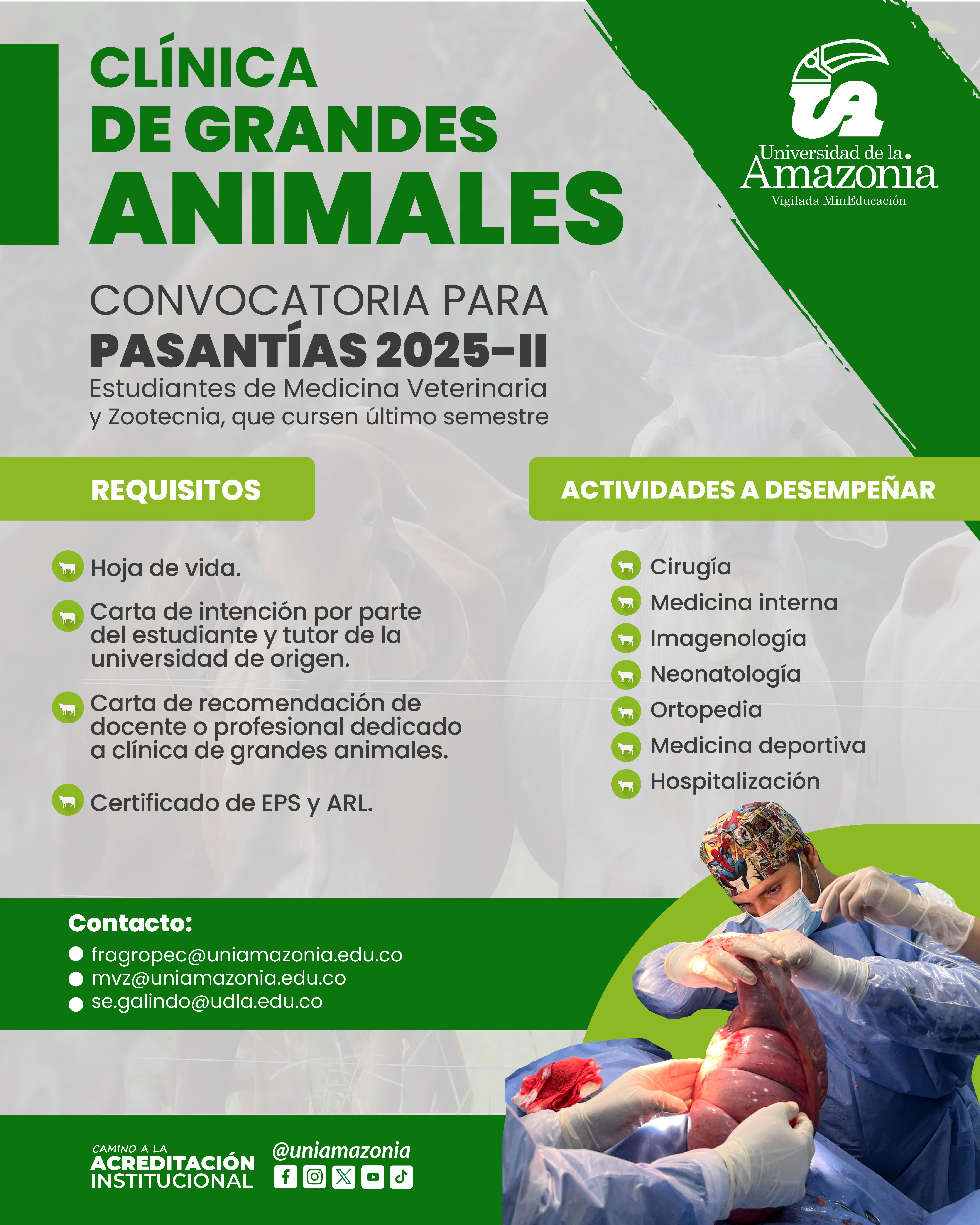 Convocatoria abierta para pasantías académicas en la clínica de grandes animales de la Universidad de la Amazonia.