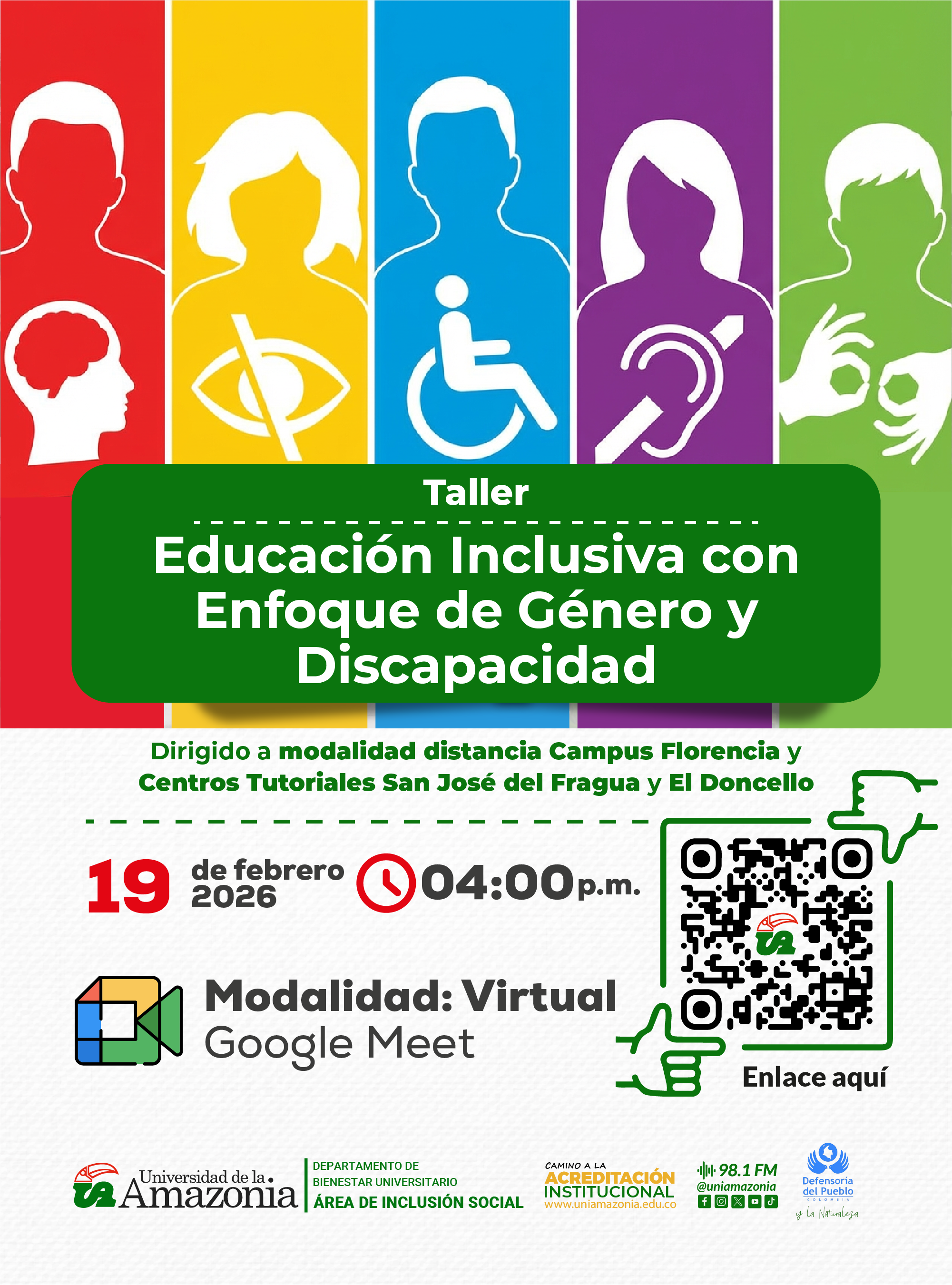 El Área de Inclusión Social adscrita al Departamento de Bienestar Universitario, invita al Taller: Educación Inclusiva con Enfoque de Género y Discapacidad.