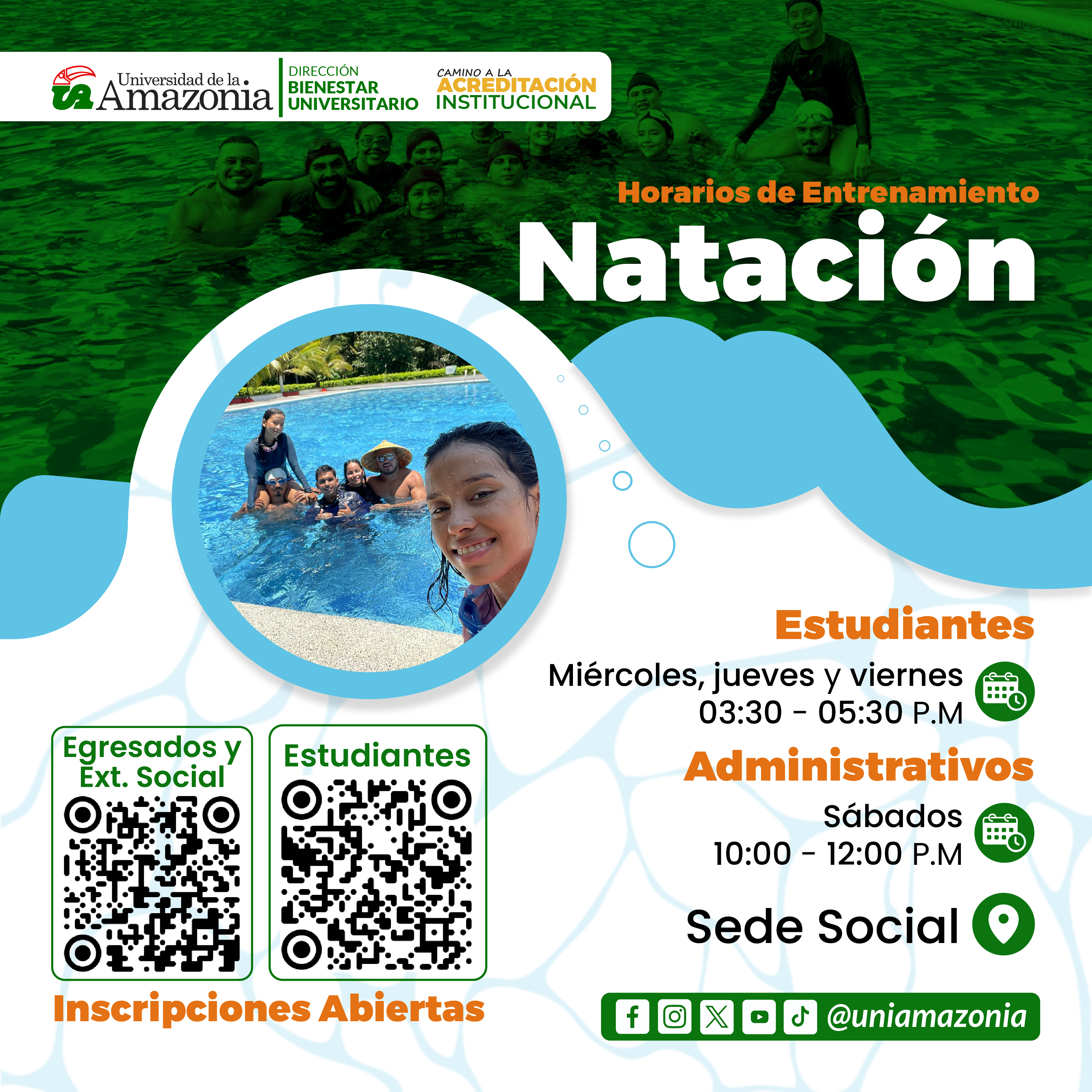 Consulta los horarios de entrenamiento de Natación y sumérgete con UniAmazonia.