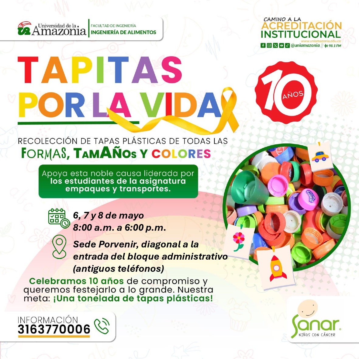 Únete a la gran jornada de recolección de tapas plásticas y ayudemos a los niños con cáncer de la Fundación Sanar, mientras protegemos el medio ambiente.