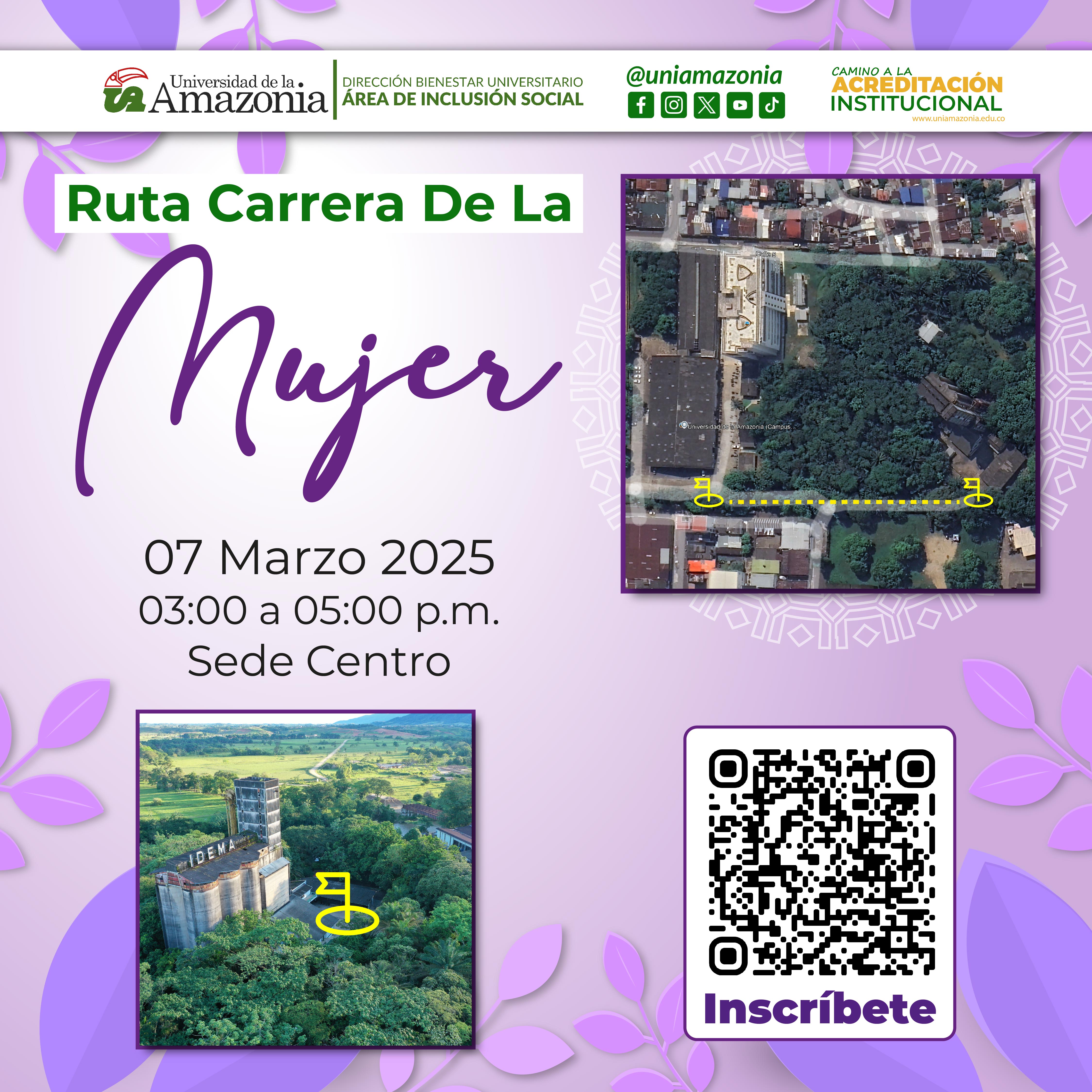 La Dirección de Bienestar Universitario y el Área de Inclusión Social te invitan a participar en la Carrera de la Mujer, conmemorando el Día Internacional de la Mujer.