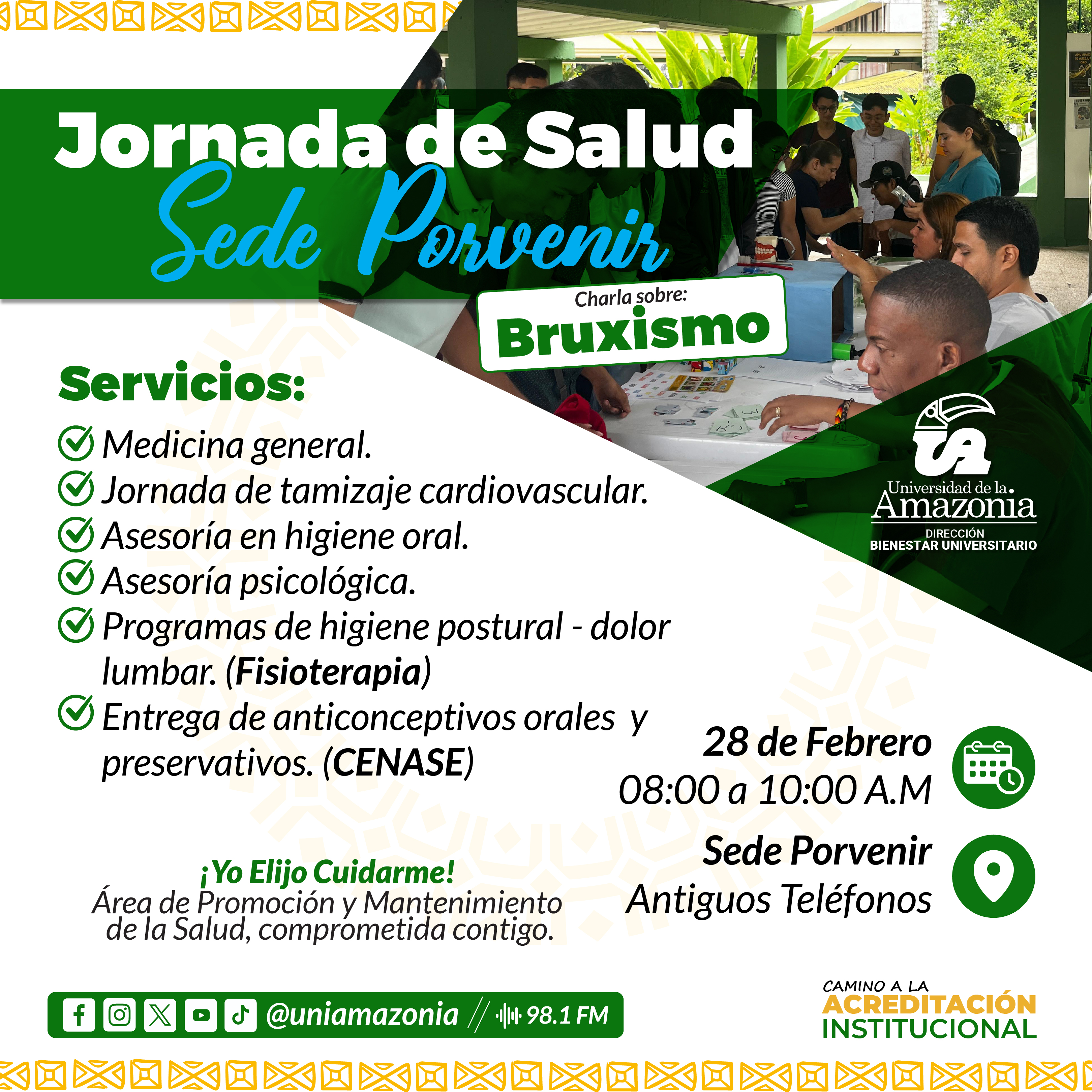 Te invitamos a la Jornada de Salud de la Universidad de la Amazonia, un espacio para aprender, prevenir y cuidar tu bienestar.