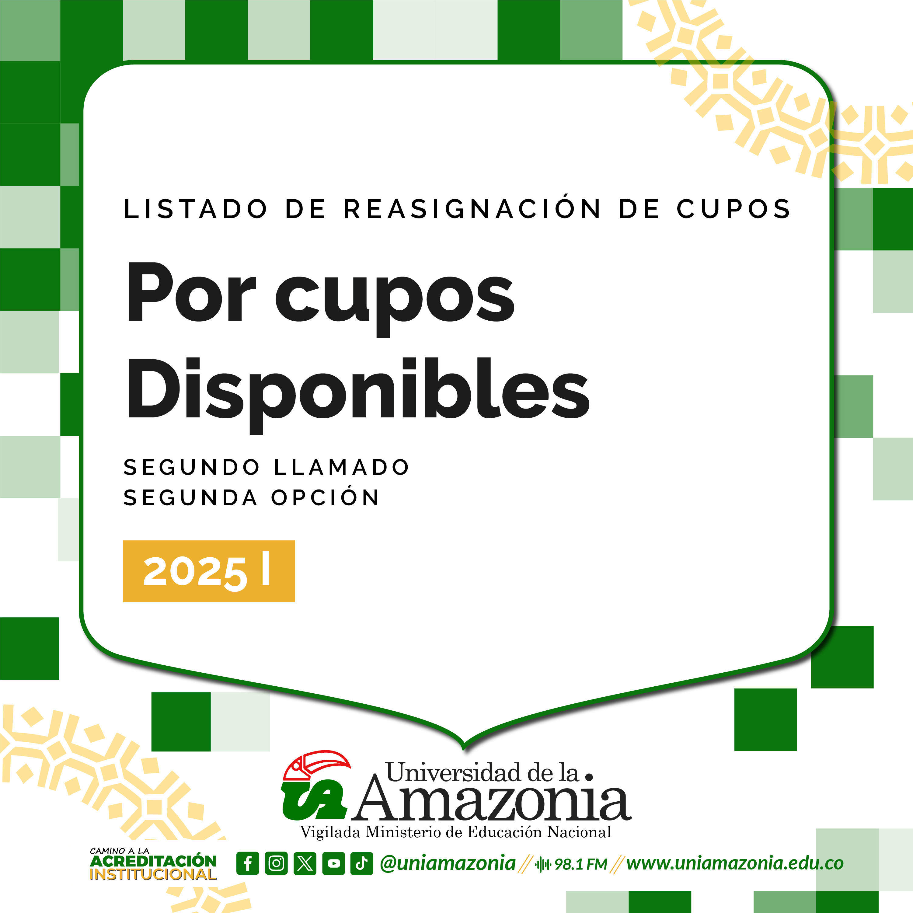 De conformidad con el Calendario Académico para el desarrollo de las actividades correspondientes al primer período académico de 2025, en los Programas de Pregrado presencial y a distancia ofertados en Florencia, se publica la reasignación de cupos no matriculados y segundas opciones en los programas que aplique.