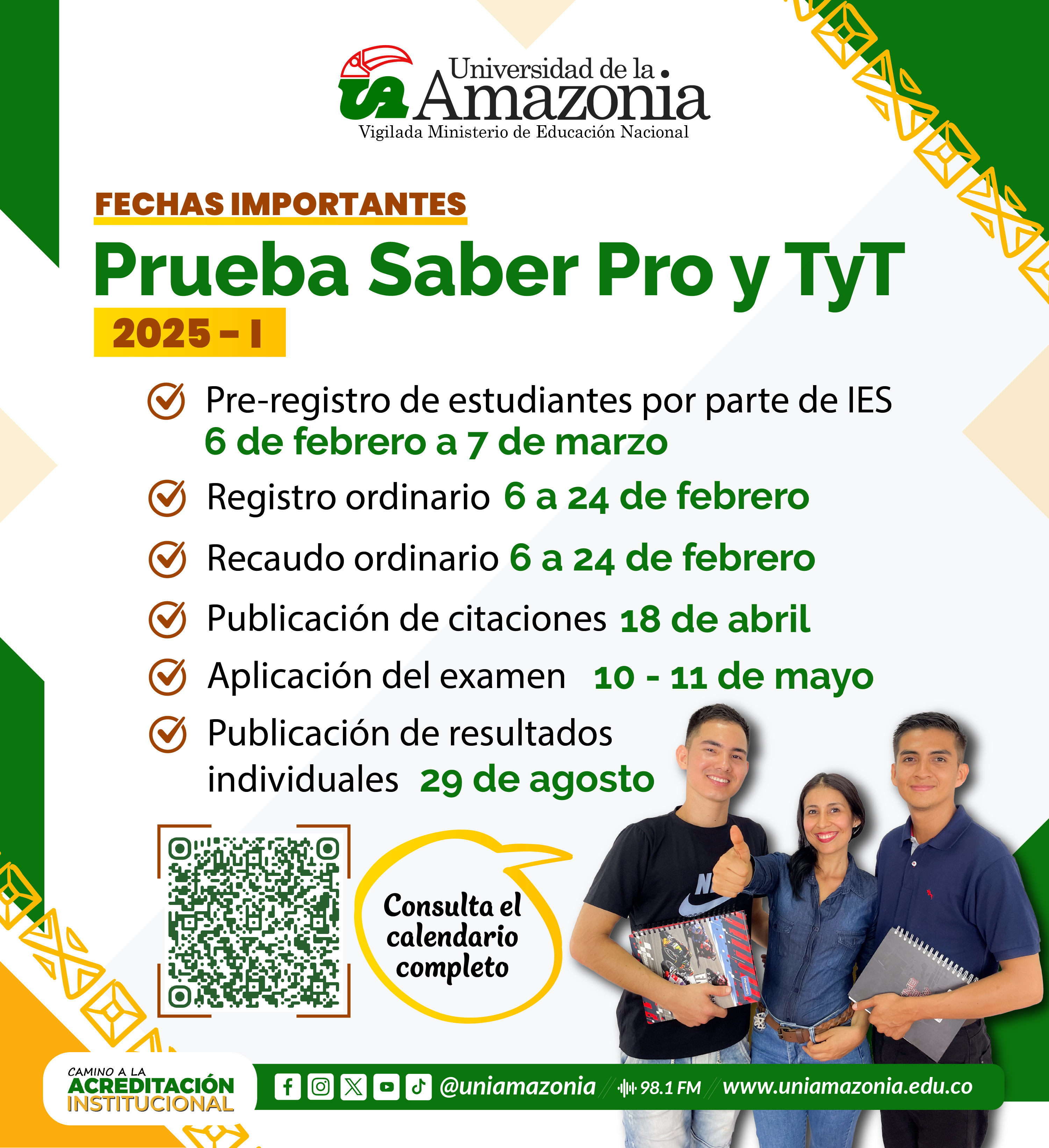 Conoce el calendario para la Prueba Saber Pro y TyT 2025-I