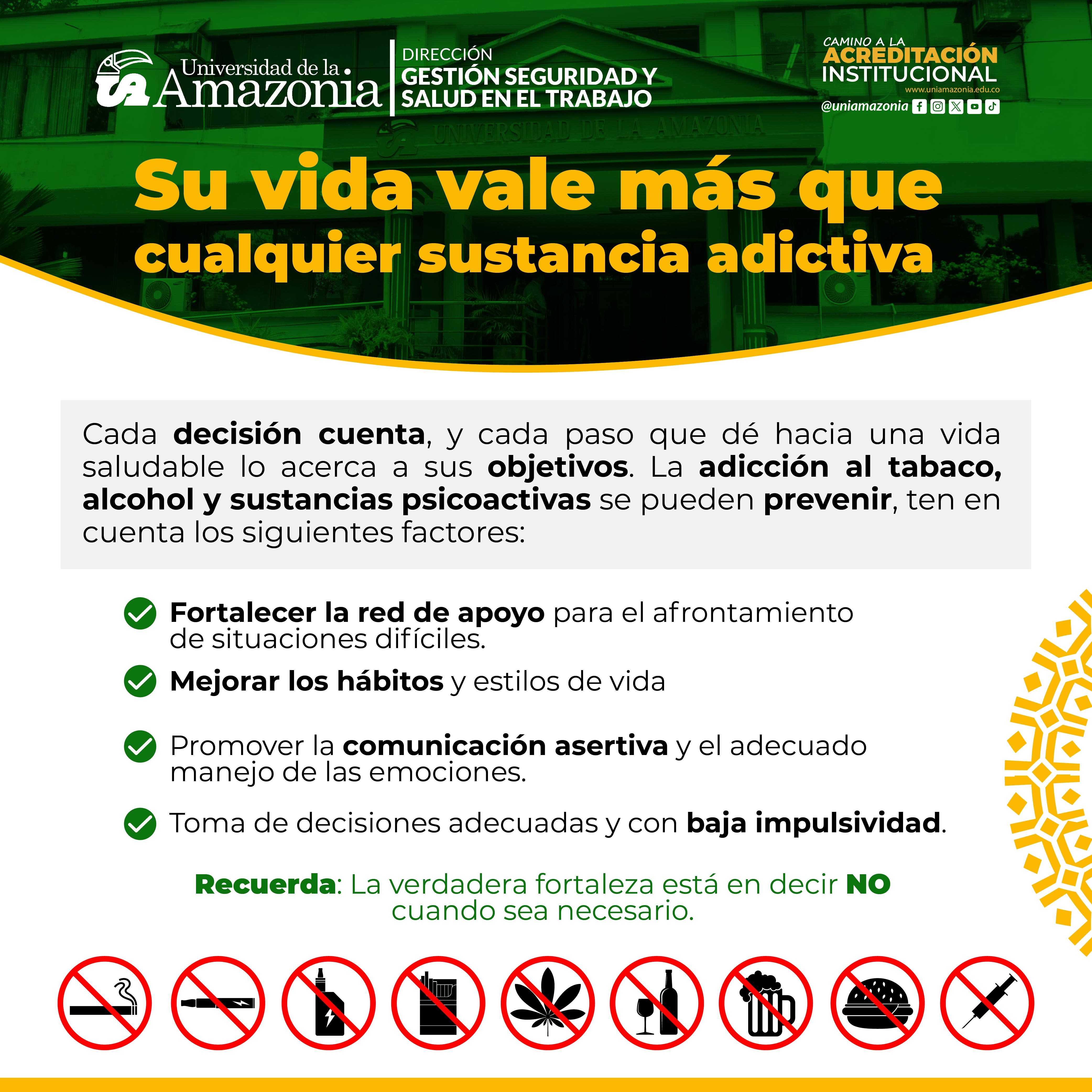 Desde la Oficina de Seguridad y Salud en el Trabajo, promovemos la prevención del consumo de Tabaco, Alcohol y Sustancias Psicoactivas.