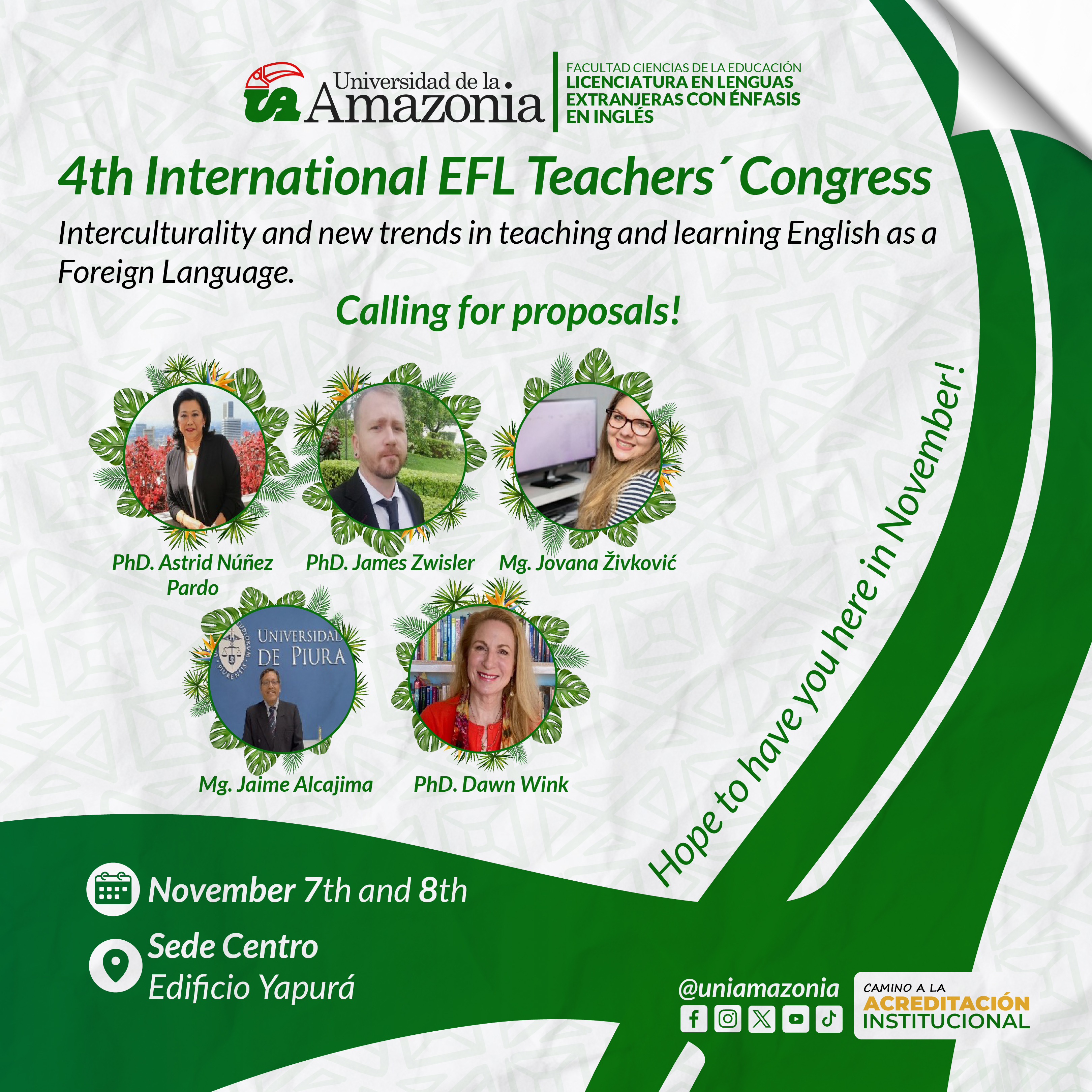 Únete los días 7 y 8 de noviembre para explorar la interculturalidad y las nuevas tendencias en la enseñanza del inglés como lengua extranjera. Envía tus propuestas antes del 20 de octubre y participa como ponente, tallerista o asistente.