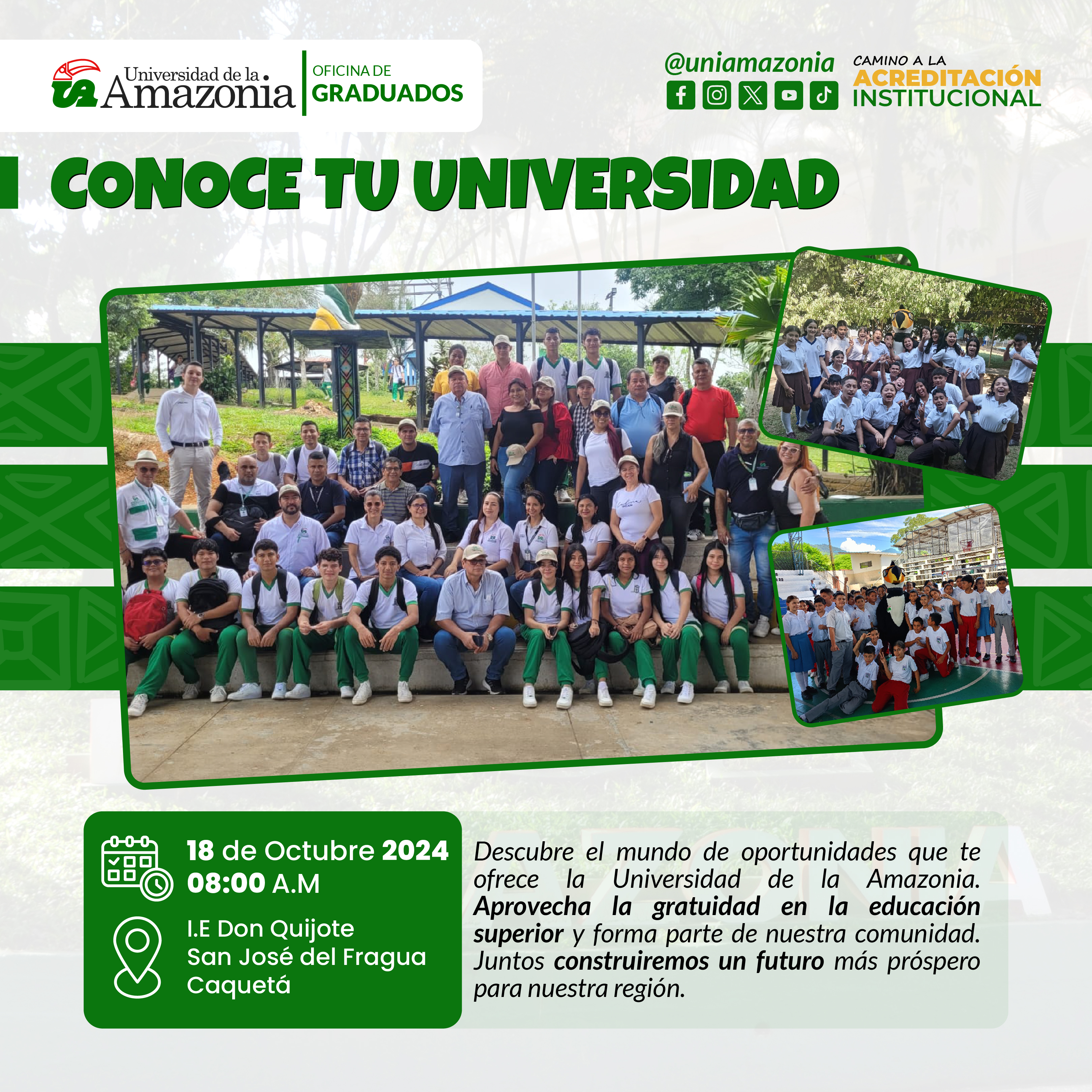 La Universidad de la Amazonia invita de manera especial a los estudiantes de grado undécimo y a sus padres a participar en este espacio informativo sobre la política de gratuidad en la Educación Superior.