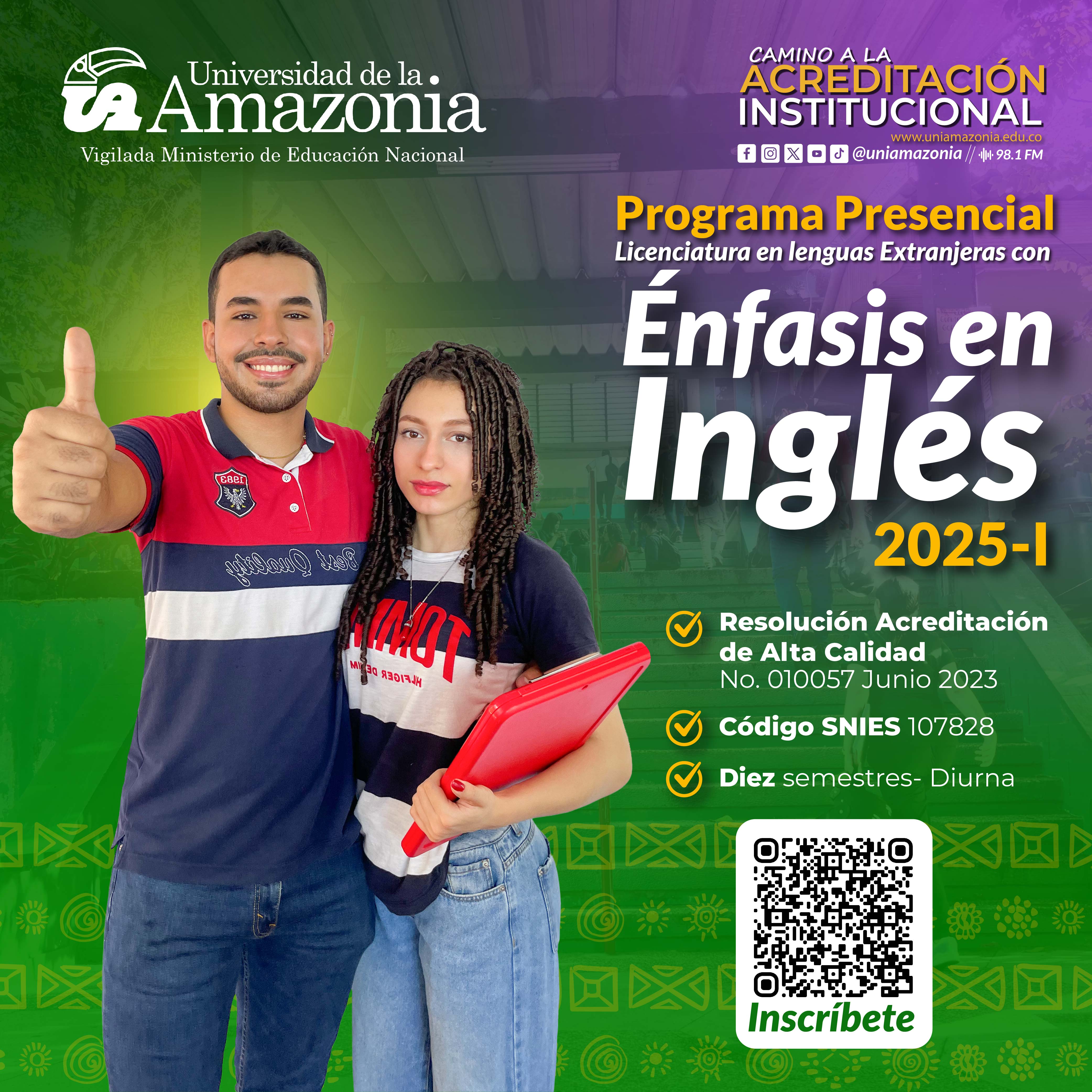 Matricúlate en la LICENCIATURA EN LENGUAS EXTRANJERAS CON ÉNFASIS EN INGLÉS y prepárate para convertirte en un profesional capaz de enseñar y comunicarte en un entorno global.