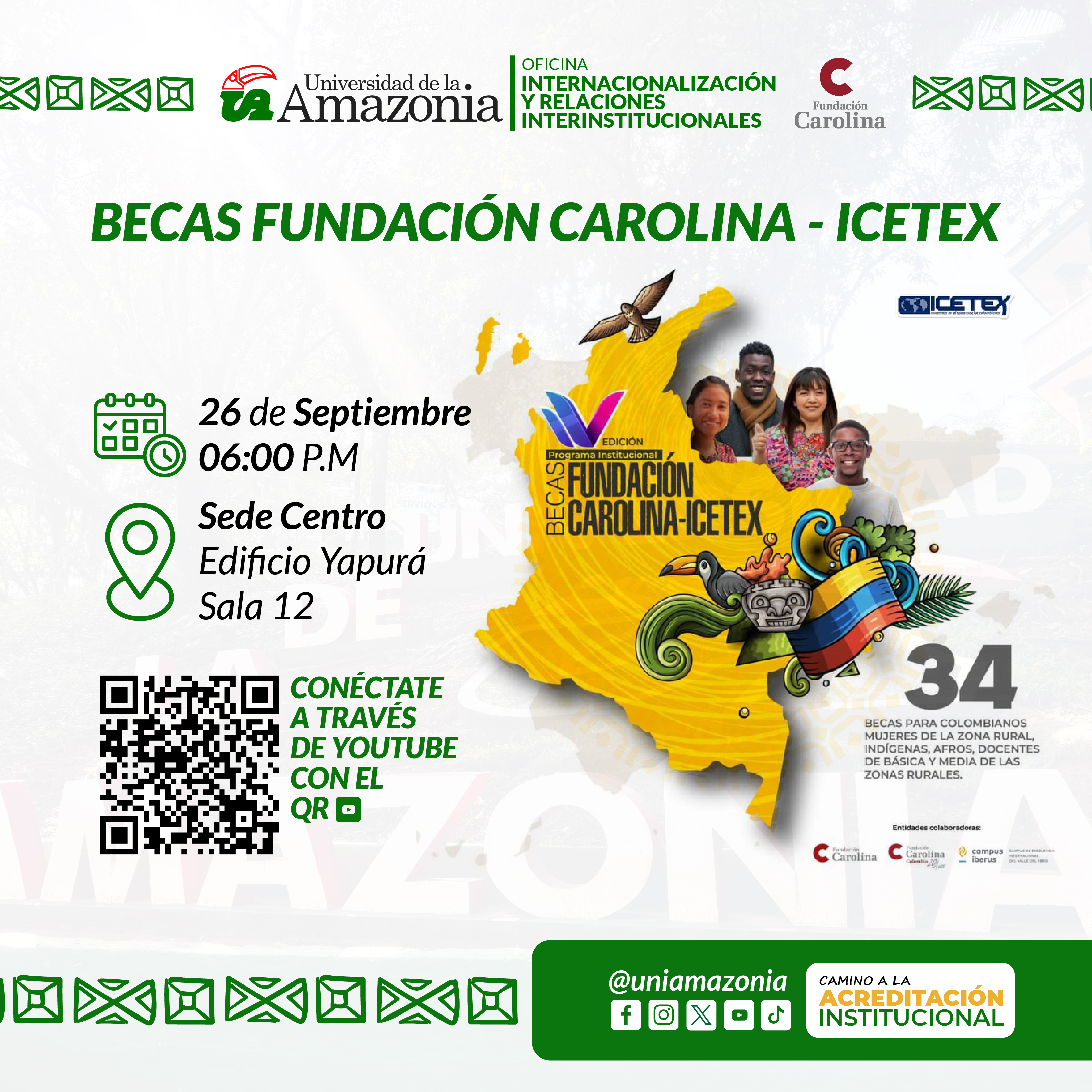 Te invitamos a la sesión informativa de las Becas Fundación Carolina-ICETEX. Conoce de primera mano cómo acceder a estos beneficios y resuelve tus dudas con un representante de la Fundación.
