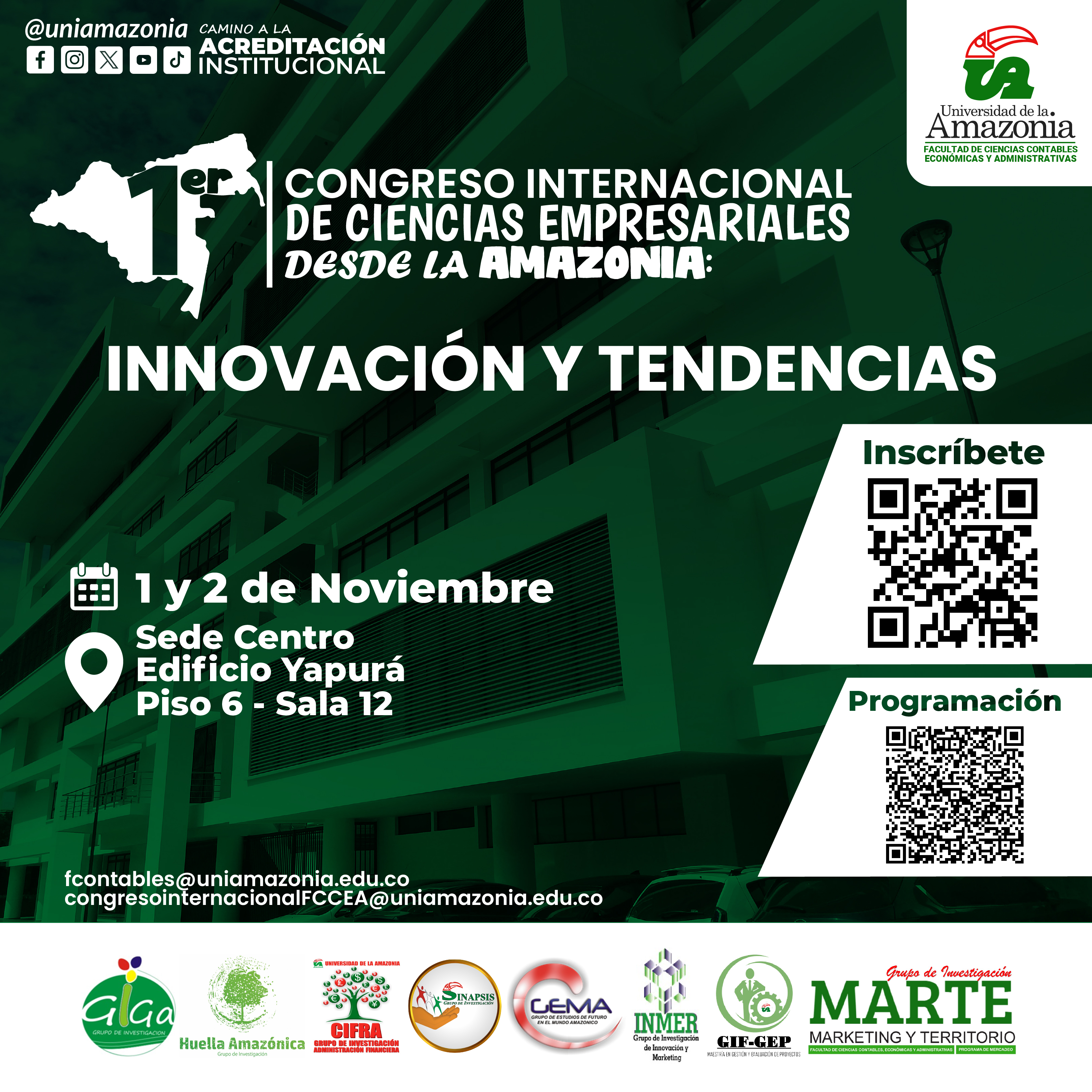 Nos complace invitarles al 1er Congreso Internacional de Ciencias Empresariales desde la Amazonia: Innovación y Tendencias, organizado por la Facultad de Ciencias Contables, Económicas y Administrativas de la Universidad de la Amazonia.Este evento académico busca fortalecer la producción académica, crear espacios de debate y fomentar redes de conocimiento en torno a la innovación y las tendencias emergentes en las áreas de ciencias económicas, administrativas y contables. Contaremos con destacados ponentes nacionales e internacionales.