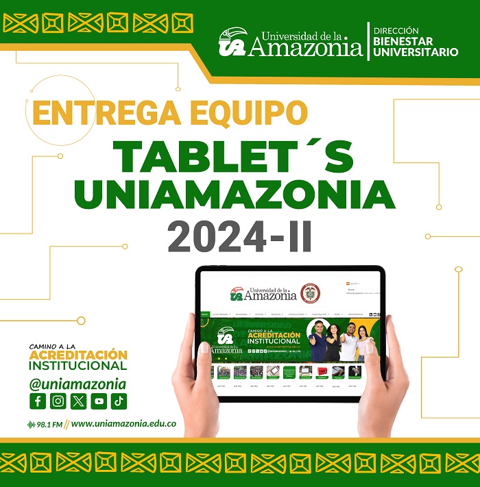 La Universidad de la Amazonia desde la Dirección de Bienestar Universitario, Área de Promoción y Apoyo Socioeconómico da a conocer a los Beneficiarios del Programa Tablet´s Uniamazonia, la siguiente información respecto a la entrega del dispositivo en calidad de préstamo: