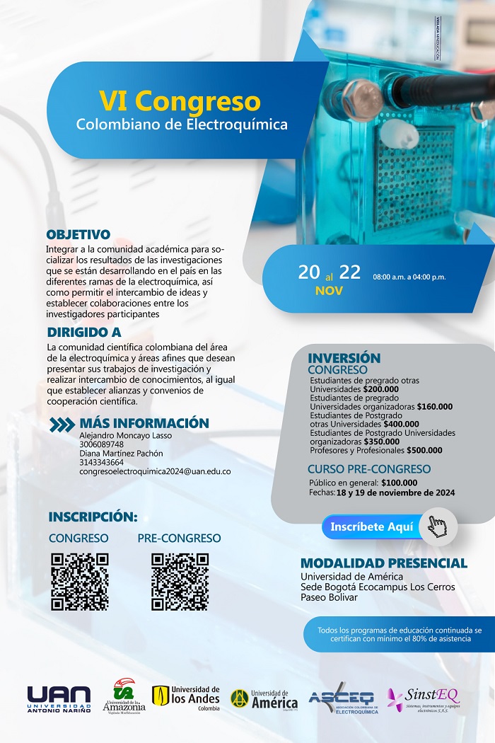 Del 20 al 22 de noviembre, la Universidad Antonio Nariño en Bogotá será el escenario para que más de 200 expertos y científicos socialicen investigaciones, compartan conocimientos y establezcan alianzas en el campo de la electroquímica.