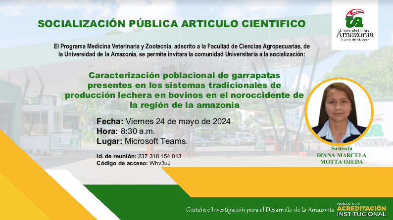 Programa de Medicina Veterinaria y Zootecnia, tiene el gusto de invitarle a la socialización Pública Articulo Cientifico.