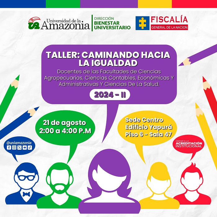 La Dirección de Bienestar Universitario, a través del área de Inclusión Social, invita a los docentes de las facultades de Ciencias Agropecuarias, Ciencias Contables, Económicas y Administrativas, y Ciencias de la Salud a participar en la capacitación en género: "Caminando hacia la igualdad".