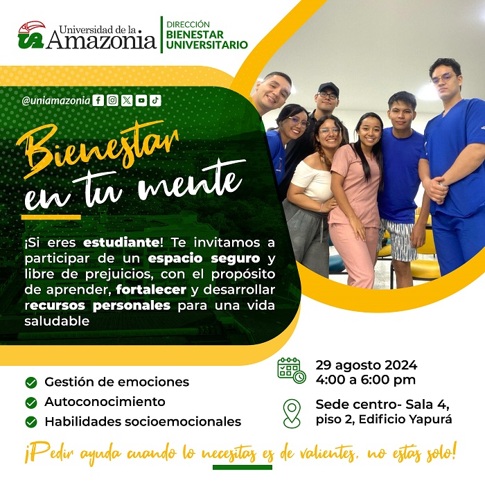 Te invitamos a unirte a nuestros GRUPOS DE APOYO, un espacio seguro y libre de prejuicios donde encontrarás herramientas para enfrentar situaciones difíciles, promoviendo un ambiente acogedor en tu vida universitaria.